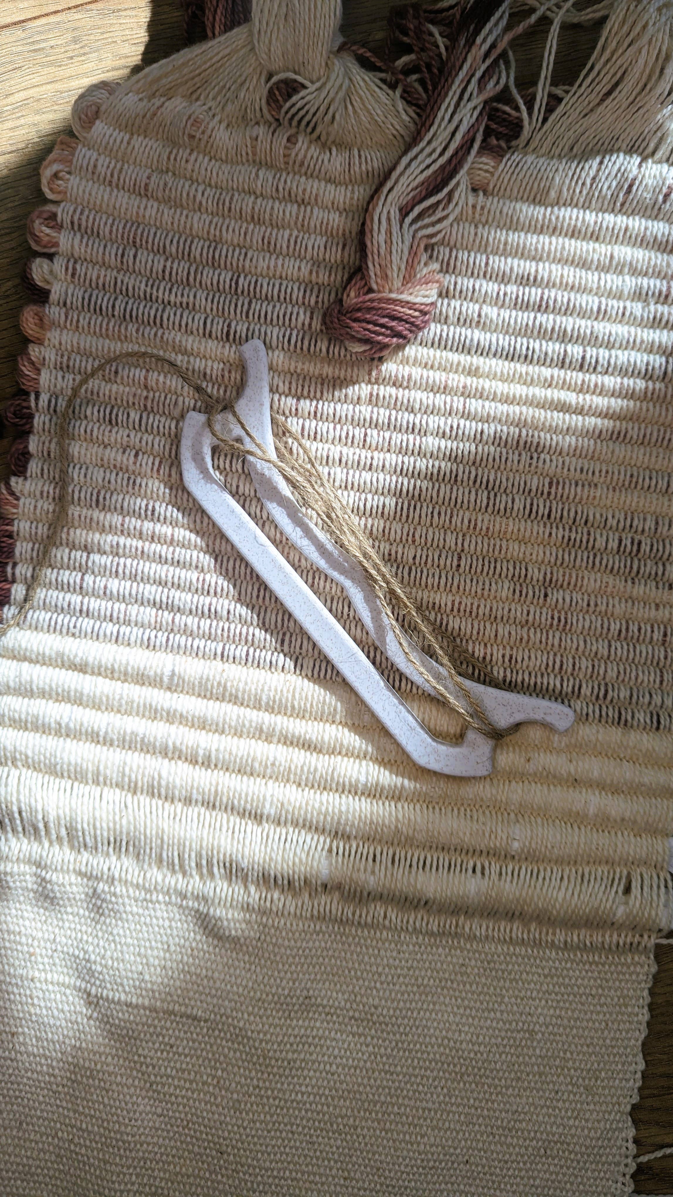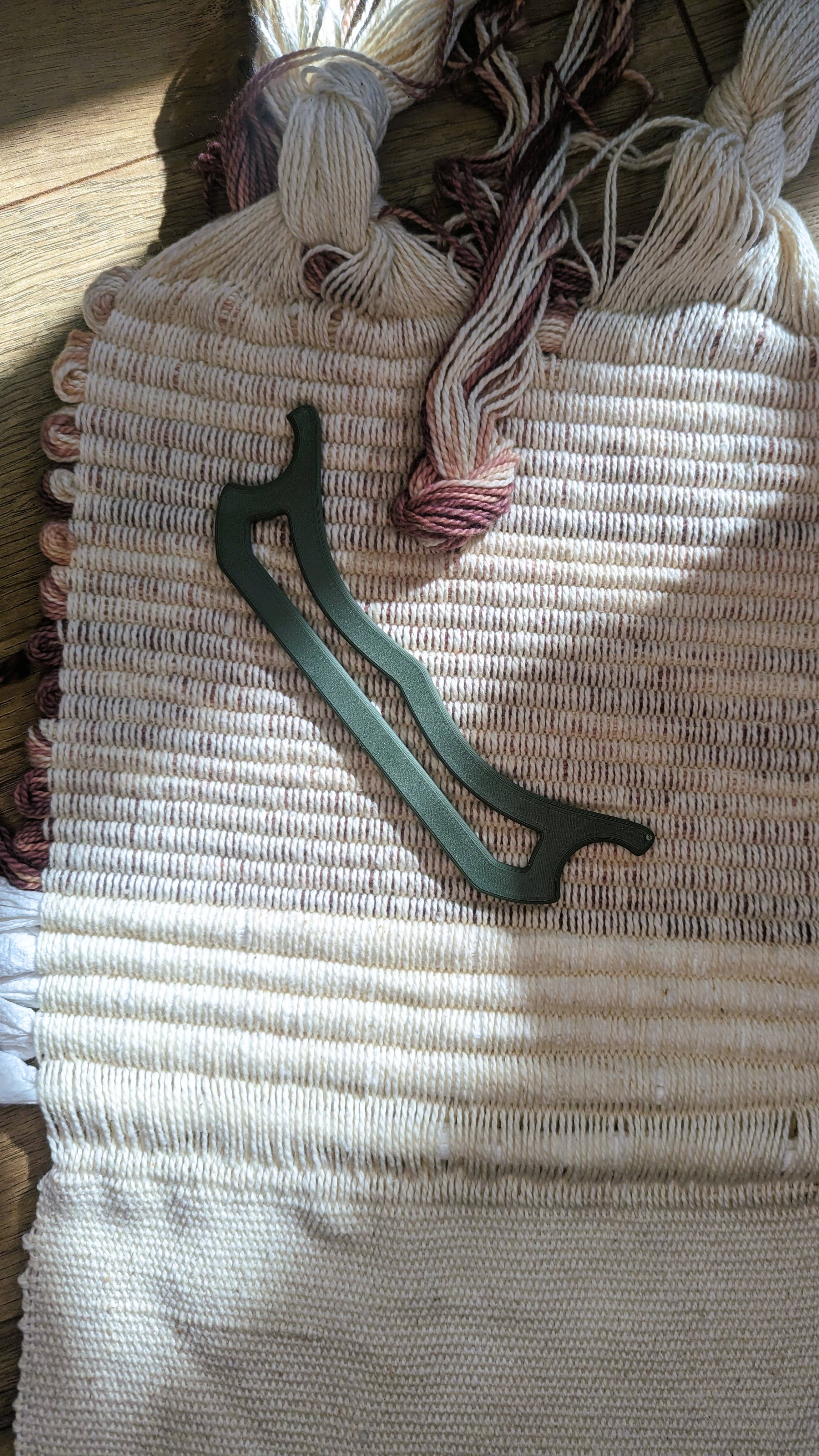 Our frame loom, designed for tapestry and versatile weaving projects, boasts a simple yet elegant design. It serves as both a functional tool and a beautiful backdrop for displaying finished pieces. Crafted for ease of use and portability, it invites weavers to explore their creativity wherever inspiration strikes. This kit contains the necessary tools to pick up some yarn and start your art piece!