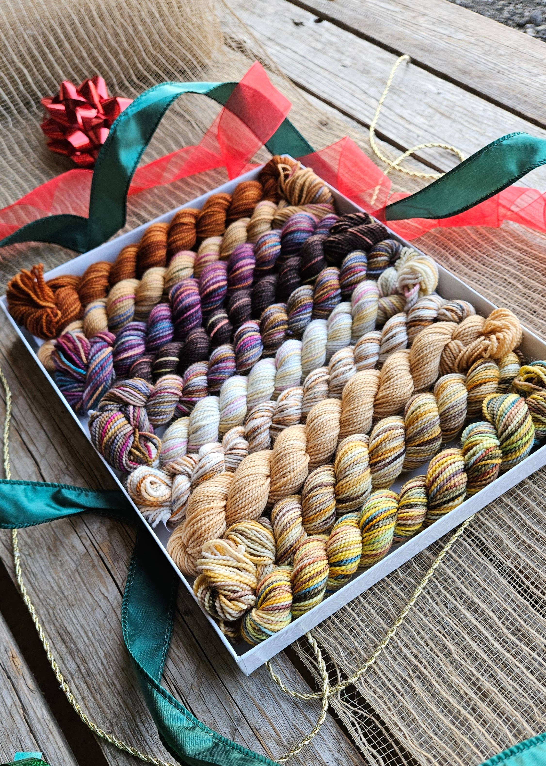 A Pencil Box, features 10 different colours in 25g skeins, specially curated by the women at Koigu. There are many ways that one can utilize the 250g(870yds), whether that be as a project, trim, to add little bits of extra colour or further variation of colour. The Pencil box collection book gives 14 beautiful small projects that one can create with a pencil box!