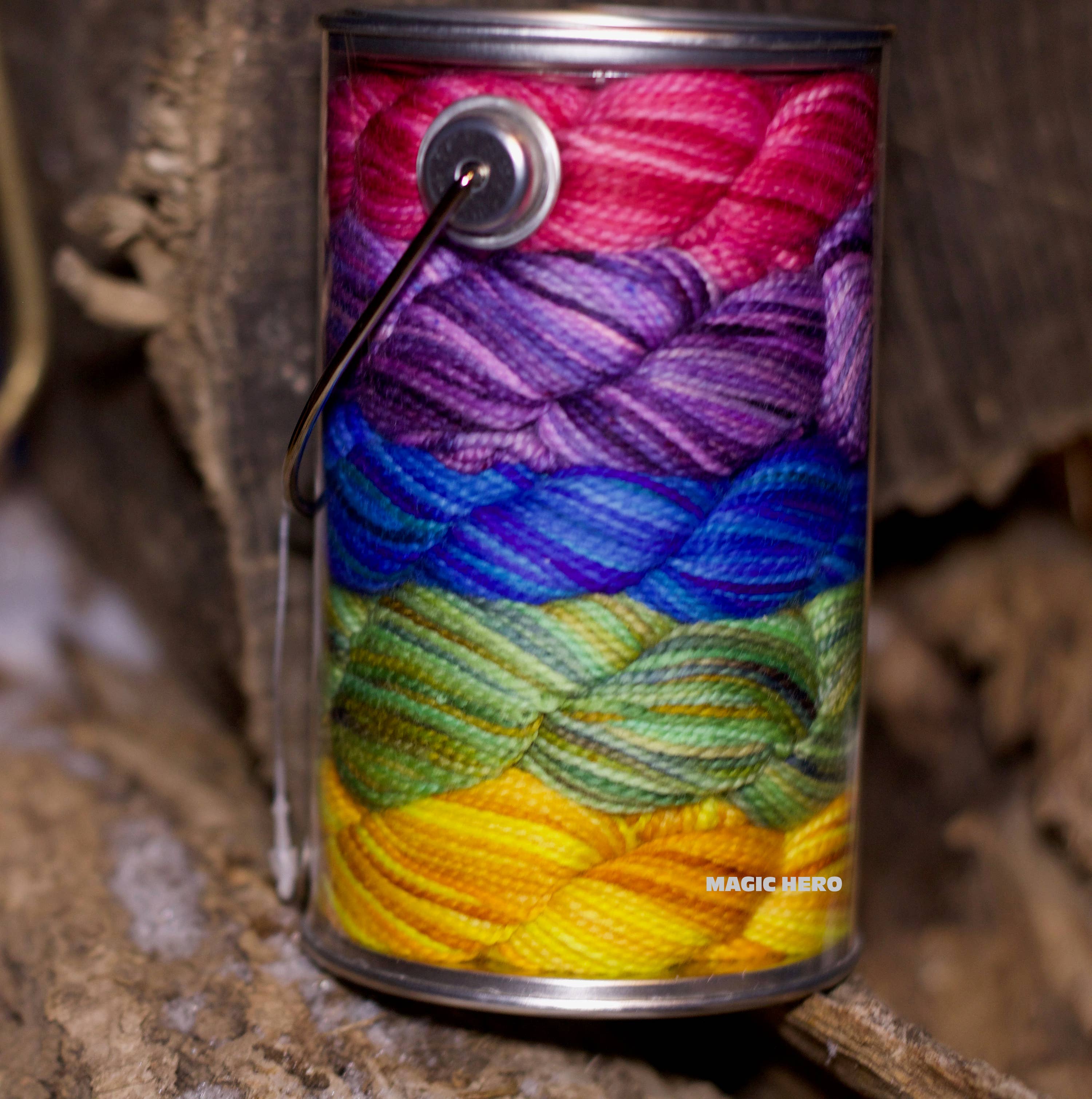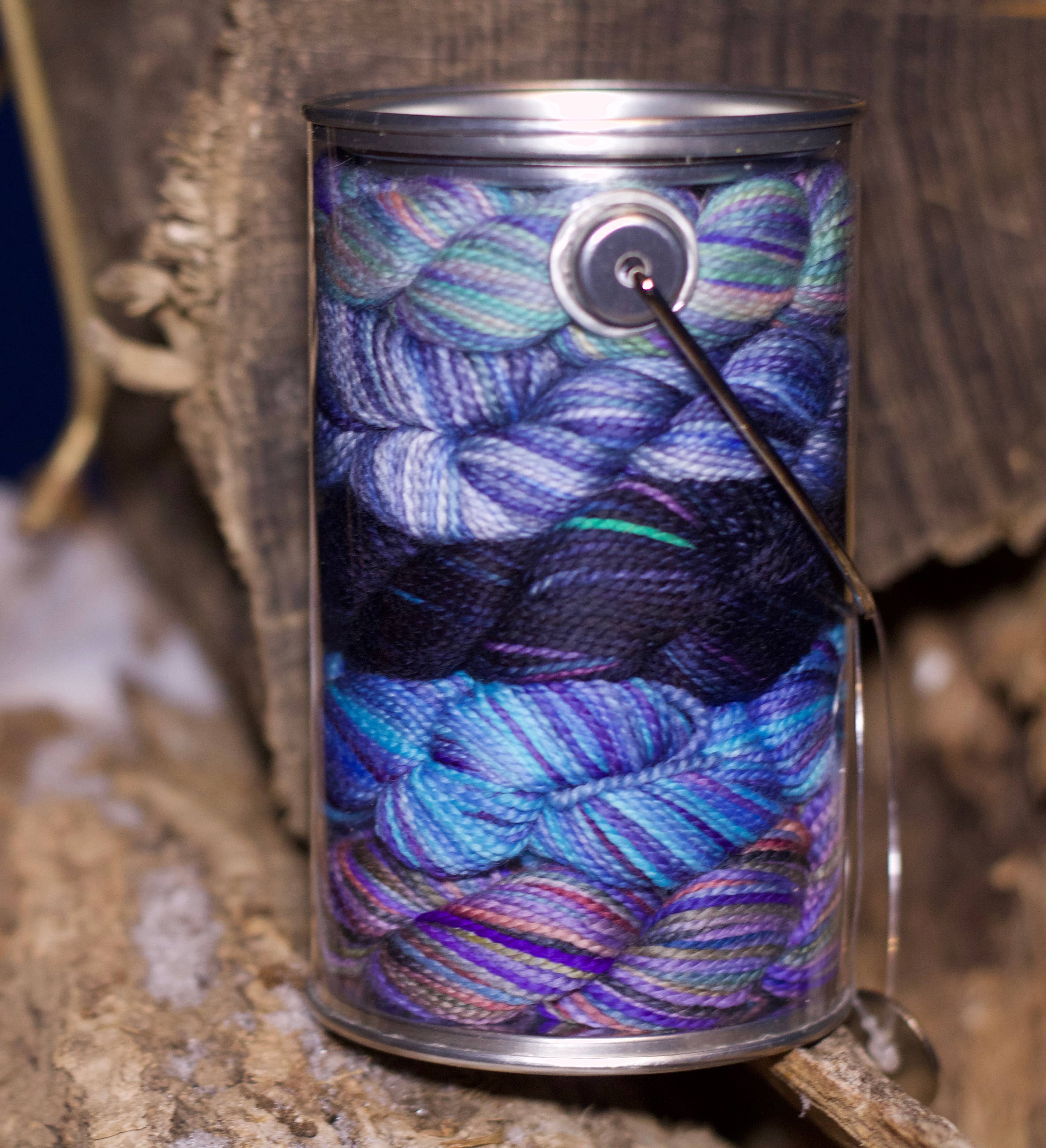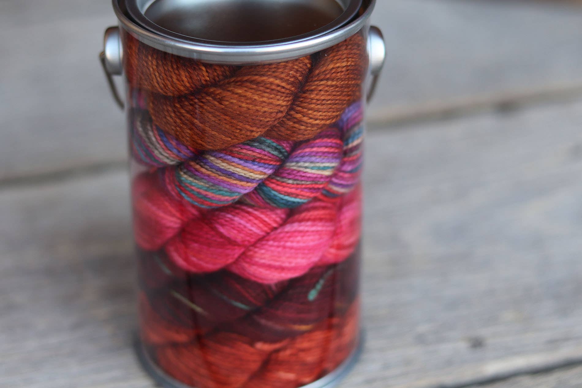 Specially curated Pencil PAINT CANS (less than a pencil box ~ 5 Demi KPPPM skeins (25g) .