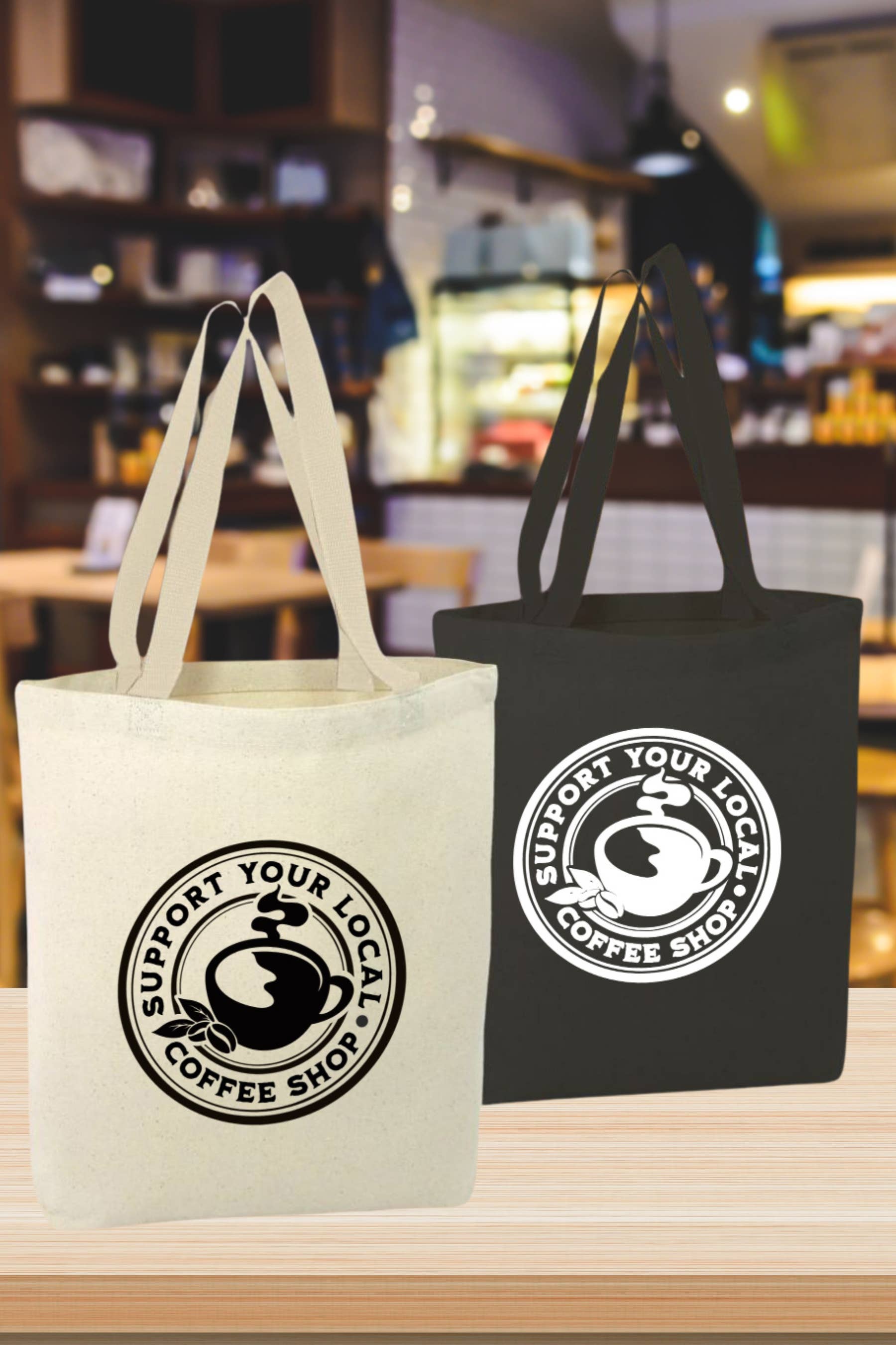 Support Local Shops Canvas Tote Bag, Coffee, Yarn, Books